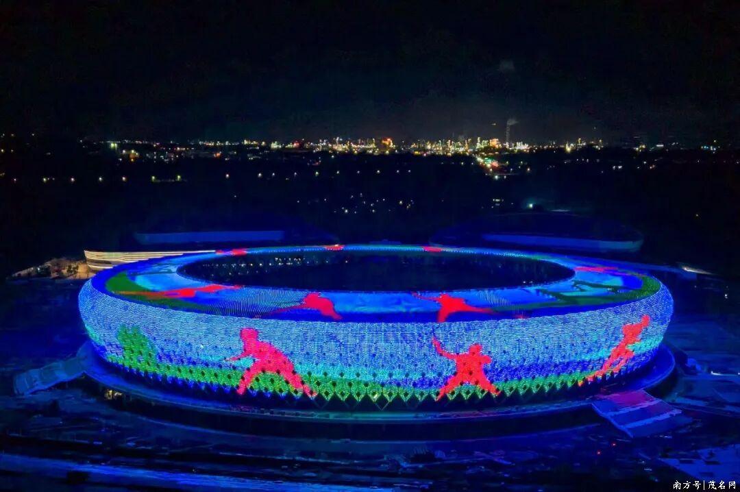 茂名奥体中心夜晚亮灯妍丽注视。周泽佳 摄