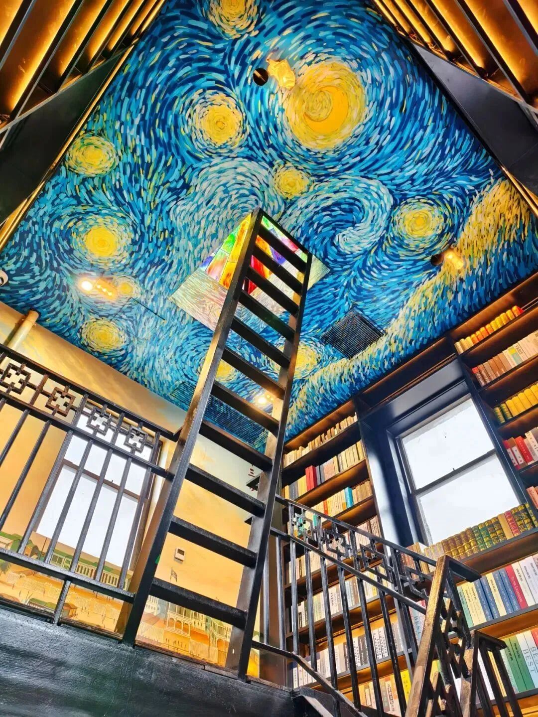 灯塔藏书楼,这里不仅是藏书万册的阅读空间,亦然一个对于历史与边远的甩手联想。沿着馆内的旋转楼梯盘旋而上,穹顶之上,梵高的《星空》彩绘如梦似幻。墙壁上,“澳门-虎门-广州十三行”的海丝商路图徐徐伸开。在这里,手指掠过书脊,仿佛能听见海上丝绸之路的千年回响。