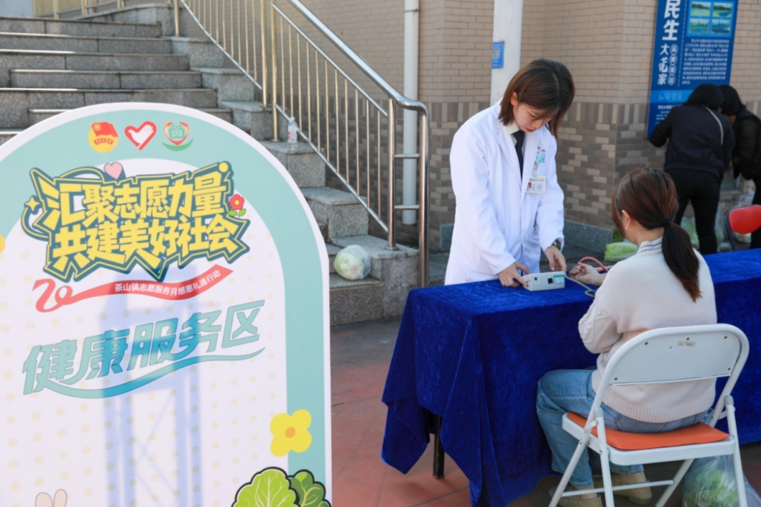此外,现场还耕作了健康就业区,由茶山镇社区卫生就业中心的专科医护团队为志愿者提供健康盘考、血压测量、刮痧、艾灸等就业,为巨匠奉上身心温暖。